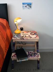 Fantabulous is a hand-painted solid birch step-stool which can be used as a night-stand, step-stool, end-table and many other things